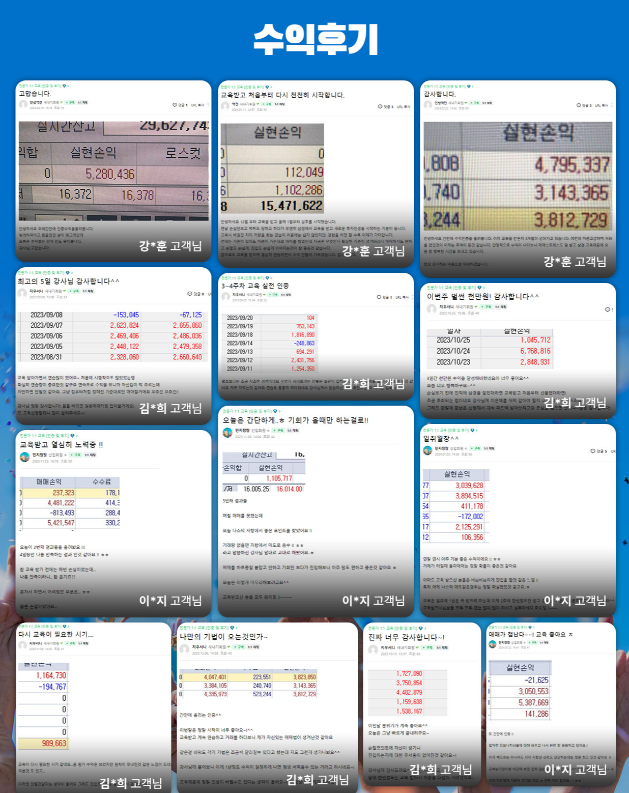 - 종합적인 교육과 리스크 관리: 1:1 온라인 무료 교육을 통해 시장에 대한 이해도를 높이고, 정교한 리스크 관리 시스템을 활용하여 예측 불가능한 변동성에 대비할 수 있도록 합니다.